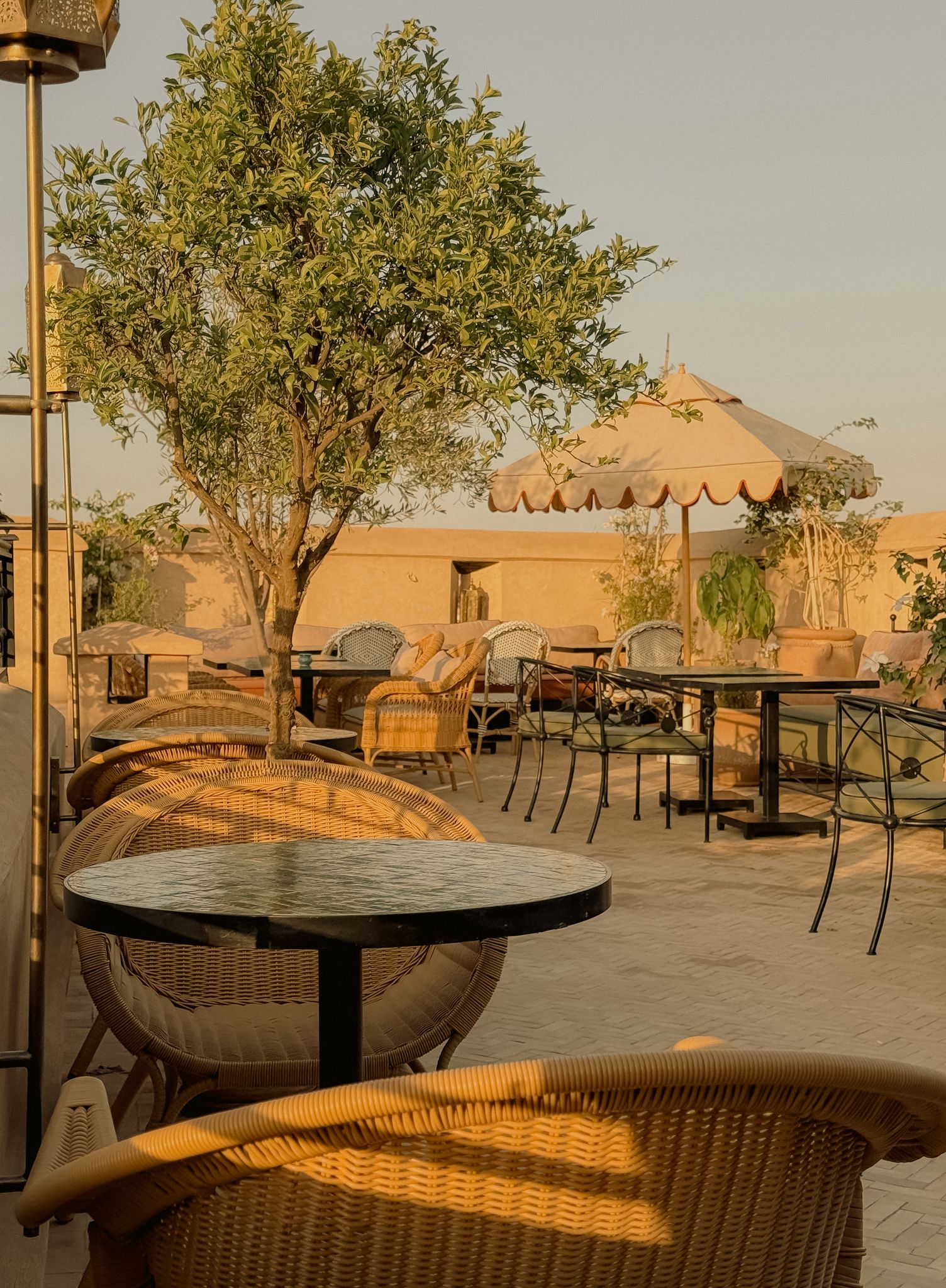 Entre le salon et le rooftop, la table de Dar Yuba s’inscrit dans le rythme de la maison. Déjeuners, pauses et dîners y sont servis dans une atmosphère calme et chaleureuse, avec une cuisine préparée chaque jour avec attention par notre cheffe.