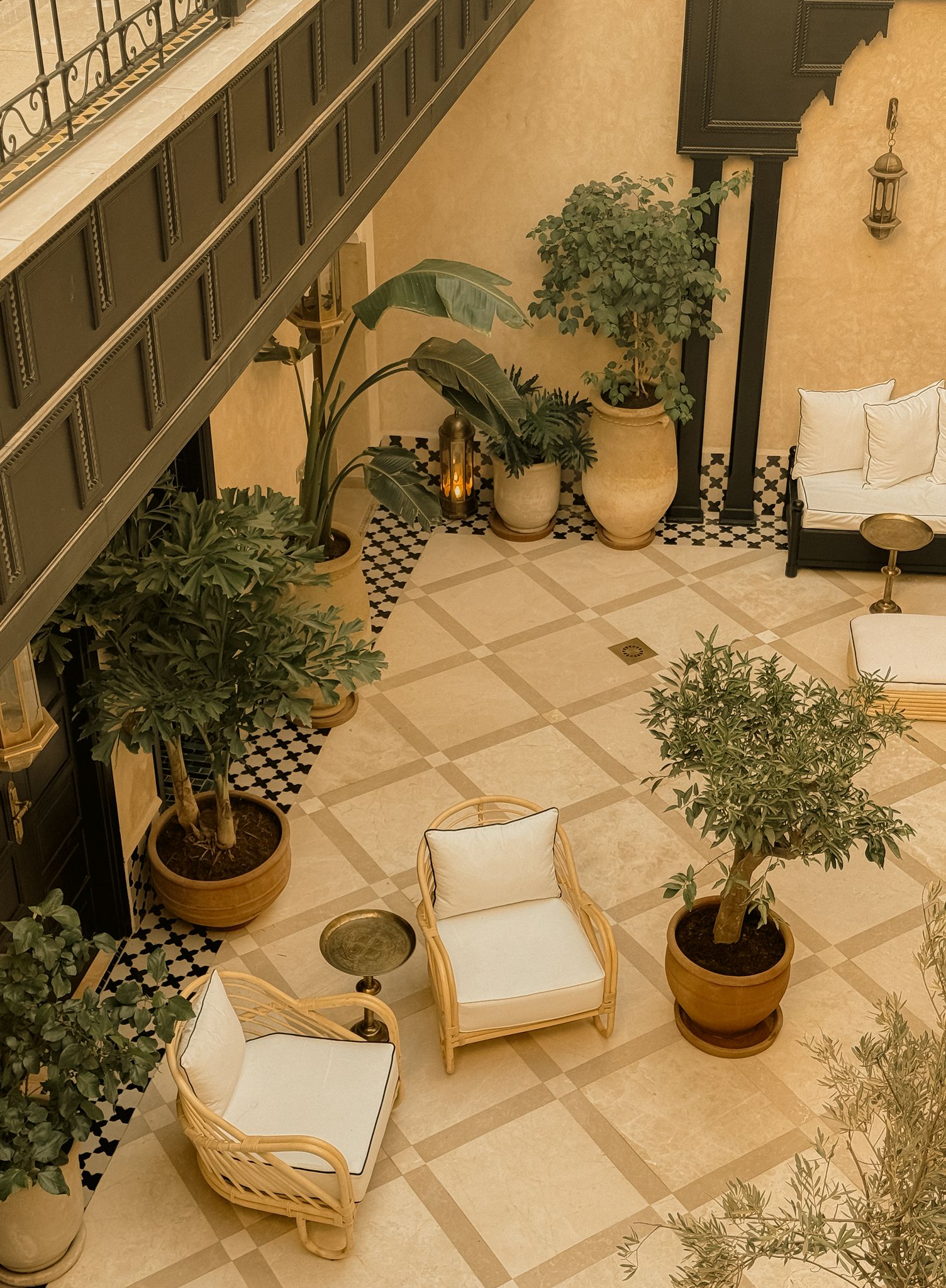 Ce travail, profondément impliqué, a donné naissance à des lieux qui se révèlent sans artifice. Les intérieurs de Dar Yuba ne s’imposent pas : ils accompagnent. Ils invitent à ralentir, à observer, à habiter l’espace avec douceur.